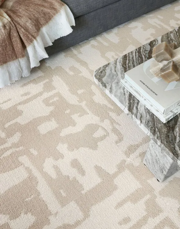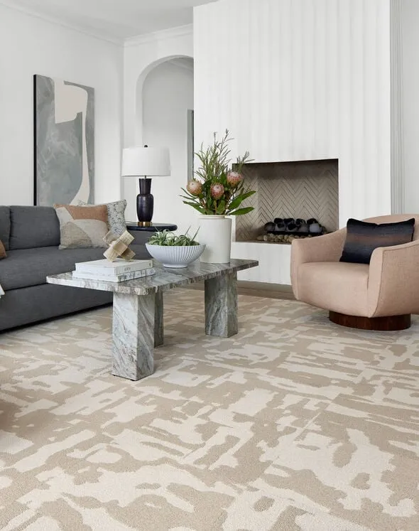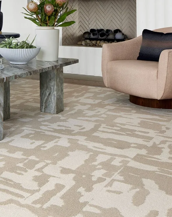 Desert-inspired hues and flowing organic shapes give this Palm Springs–inspired carpet tile a relaxed yet contemporary feel. The soft, natural tones create warmth and visual texture, making it an inviting choice for modern interiors. Designed as a random pattern, no two tiles are exactly alike, ensuring every installation feels unique. The non-aligning layout adds flexibility and effortless character to any space.