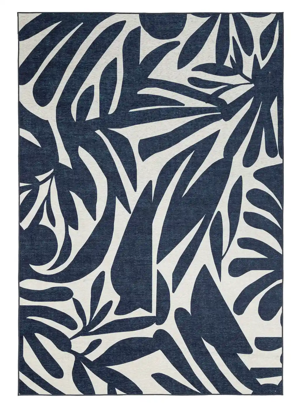 Damaris ek stylish blue, grey aur cream indoor-outdoor rug hai jisme modern abstract leaves ka design diya gaya hai. Ye 100% polyester se bani smooth flatweave rug hai jo foldable aur machine washable hai. Isme built-in non-slip underlay laga hua hai, jo ise bacchon aur pets wale high-traffic gharon ke liye perfect aur safe banata hai.